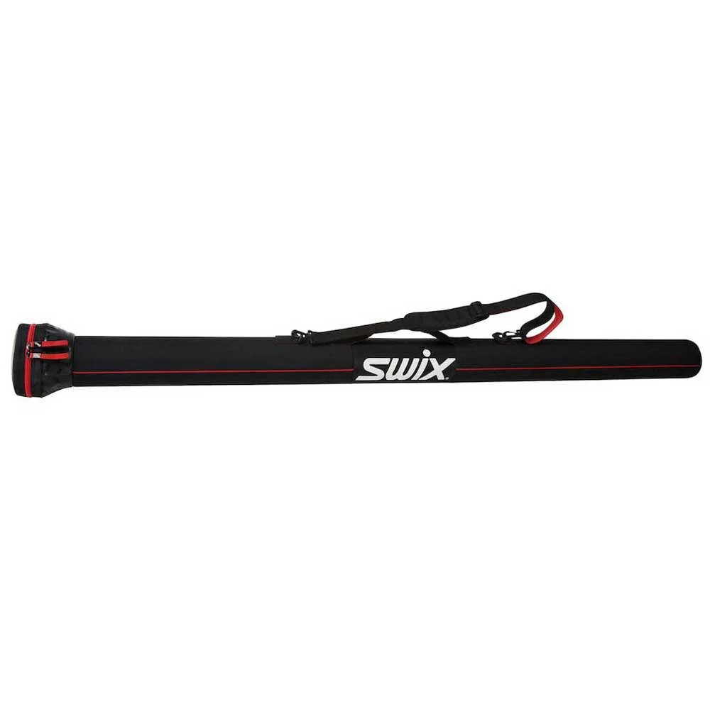 Made with 900 denier polyester with PU packing. Holds two pair of Nordic poles, PVC inner pipe for protection and durability. ¾ zip lid at top with inside pocket to hold tips. Detachable padded non skid shoulder straps.