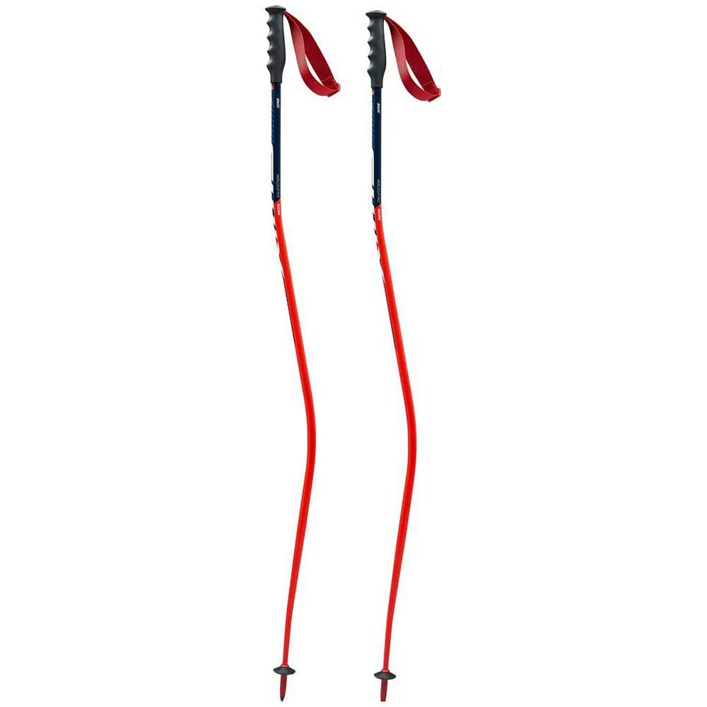 Top racing ski pole in 7075 aluminum with downhill bend. Downhill grip and downhill basket. Use: Racing, freeriding.